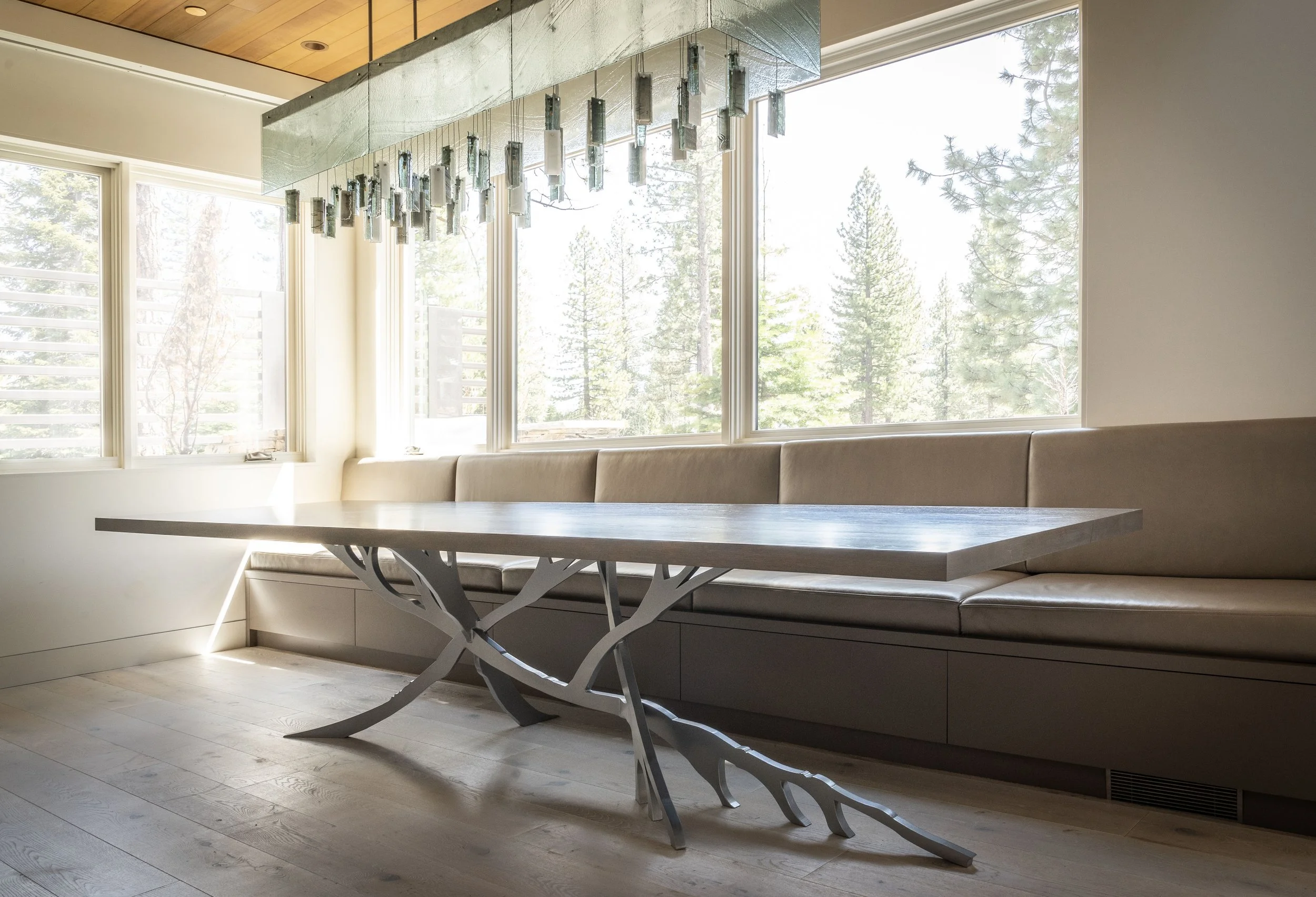 Designed by Emily Roose, Principal of Emily Roose Interiors, the Branches Dining Table is an award-winning custom furniture piece created for the Thunderbird Circle project in Truckee, California, in the Lake Tahoe region. Crafted as a showstopping centerpiece for a grand entertaining space, this 12-foot dining table was tailored to comfortably accommodate large gatherings while bringing sculptural, nature-inspired design into the home.